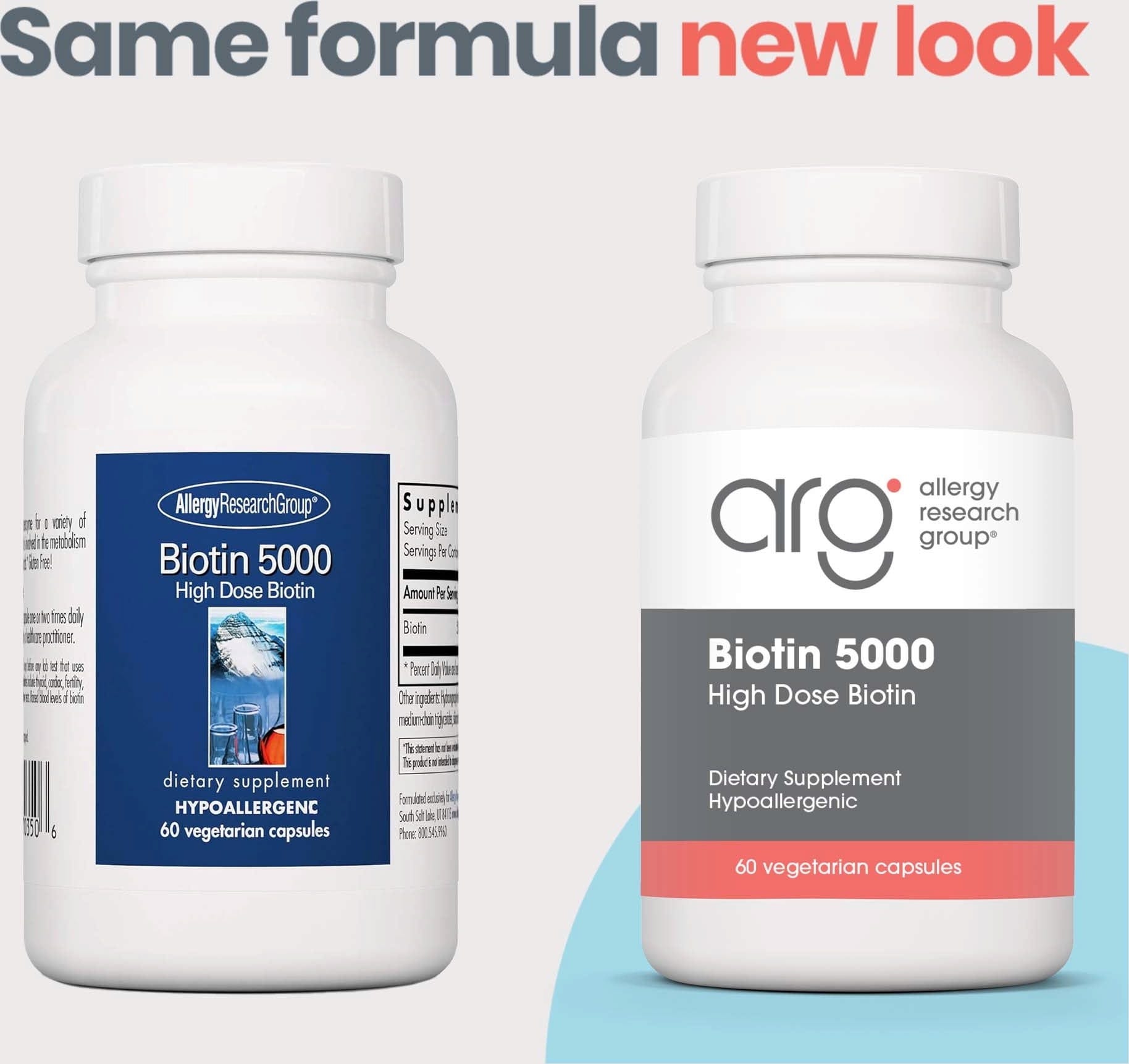 Allergy Research Group bietet mit Biotin 5000 pro Kapsel 5000 μg Biotin.