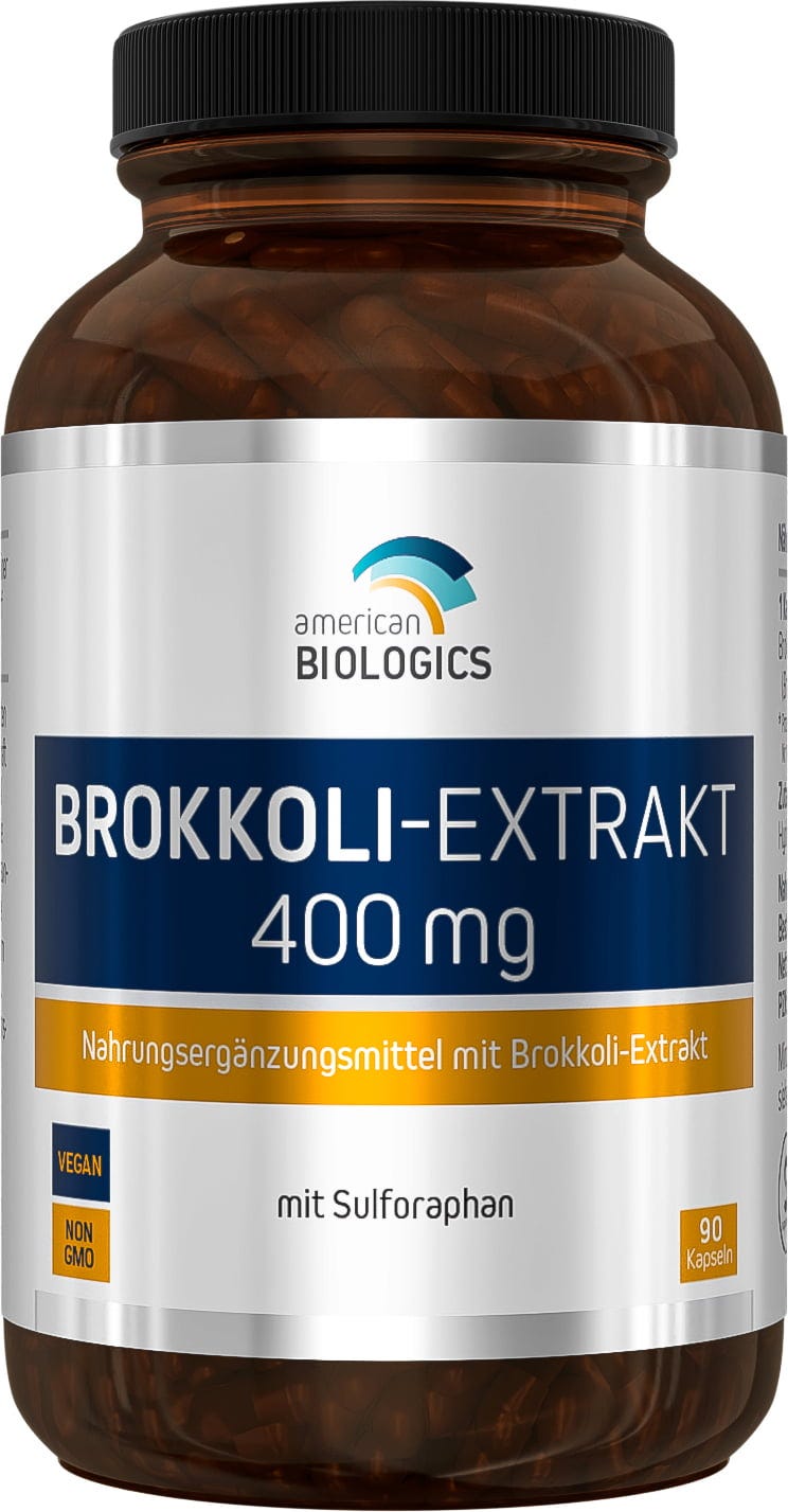 Die Brokkoli-Extrakt Kapseln von American Biologics enthalten von Natur aus einen hohen Gehalt an Sulforaphan. Sie sind vegan, frei von Gentechnik und können täglich eingenommen werden.