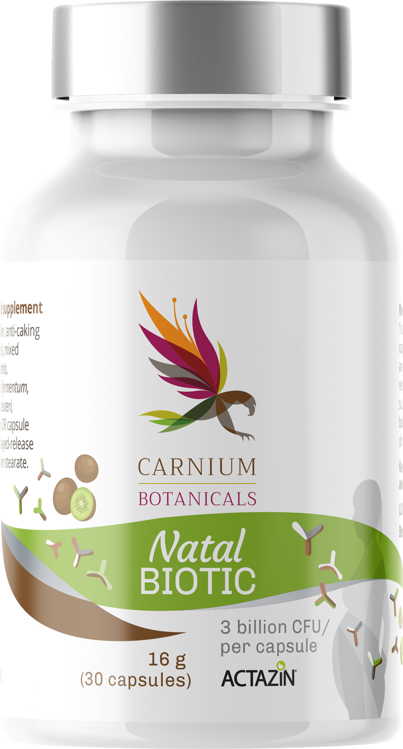 Natal Biotic von Carnium Botanicals sind vegane Kapseln, die speziell für schwangere und stillende Mütter entwickelt wurden. Sie enthalten wertvolle mikrobiologische Kulturen sowie hochwertigen Actazin® Kiwi-Extrakt.