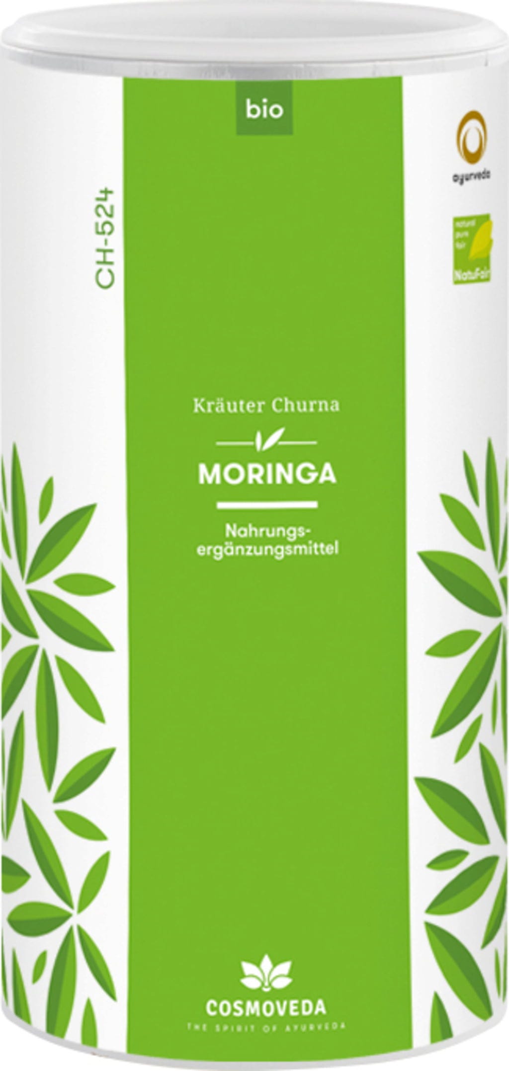 Die Blätter, welche Cosmoveda für das Moringa Churna BIO verwendet, stammen vom Moringa oleifera auch genannt ,,Meerrettichbaum'', aus Indischen und Srilankesischen Fair Trade und Bio Projekten.