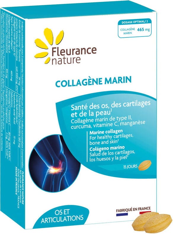Kollagen kommt natürlicherweise im Körper vor und ist ein essenzieller Bestandteil von Knochen, Knorpeln und Haut. Es ist das am häufigsten vorkommende Protein im menschlichen Körper. Seine Aufgabe besteht darin, den Zusammenhalt, die Festigkeit und die Elastizität des Gewebes zu gewährleisten. Das aus Meeresknorpel-Extrakt gewonnene Typ-II-Hydrolysat ist für seine einfache Resorptionsfähigkeit bekannt und stammt aus einem Nebenprodukt der bretonischen Fischerei. Kombiniert mit Kurkuma, Mangan, Glucosamin, Chondroitin und Vitamin C macht es das Produkt zu einer optimalen Ergänzung der täglichen Routine.