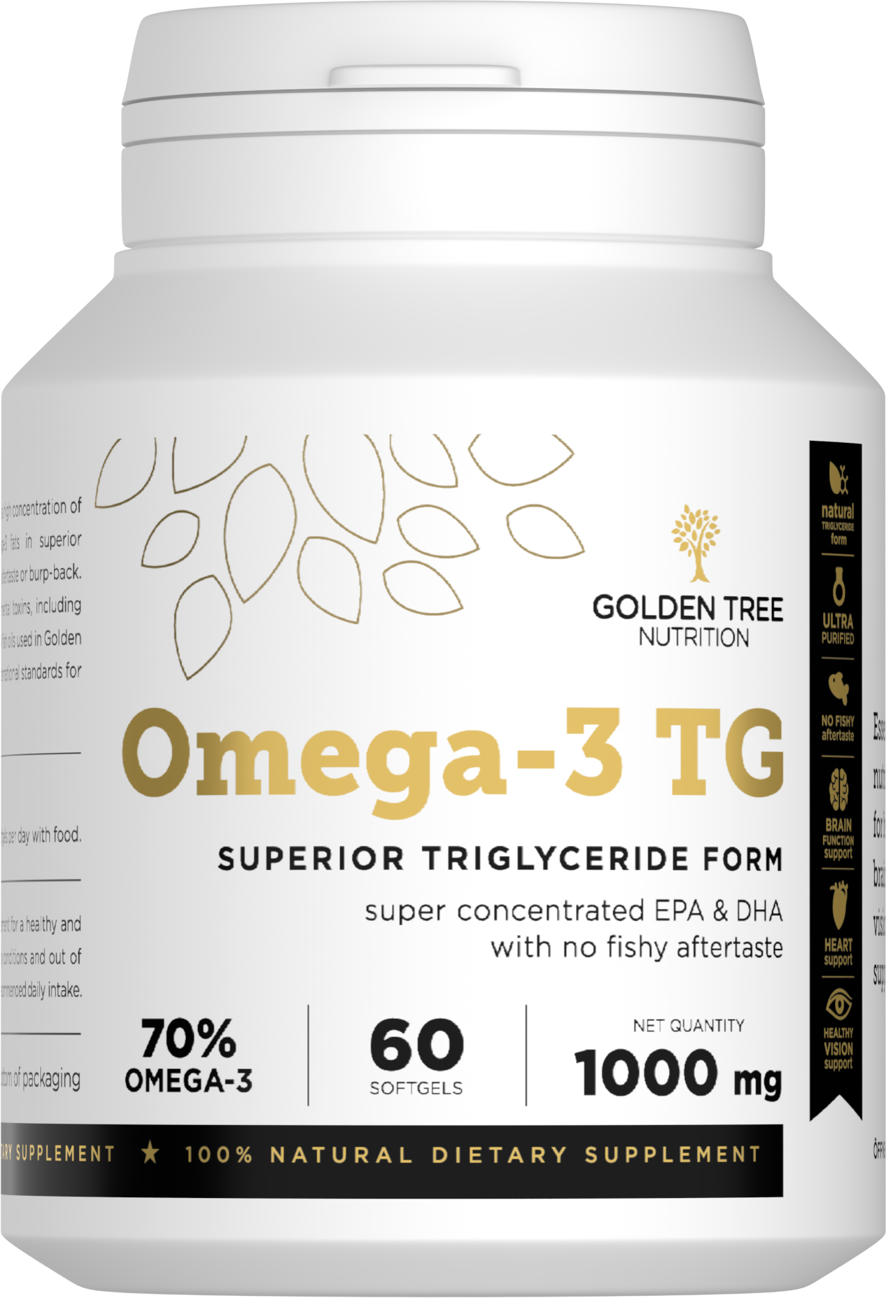 Omega 3-TG von Golden Tree ist ein natürliches Fischölkonzentrat in Triglycerid-Form, um vom Körper bestmöglich aufgenommen werden zu können. Es bietet eine hohe Konzentration an Omega-3-Fettsäuren (70 %) sowie an EPA (40 %) und DHA (20 %). Ein weiterer Vorteil: Die Softgels lösen kein unangenehmes Aufstoßen aus.