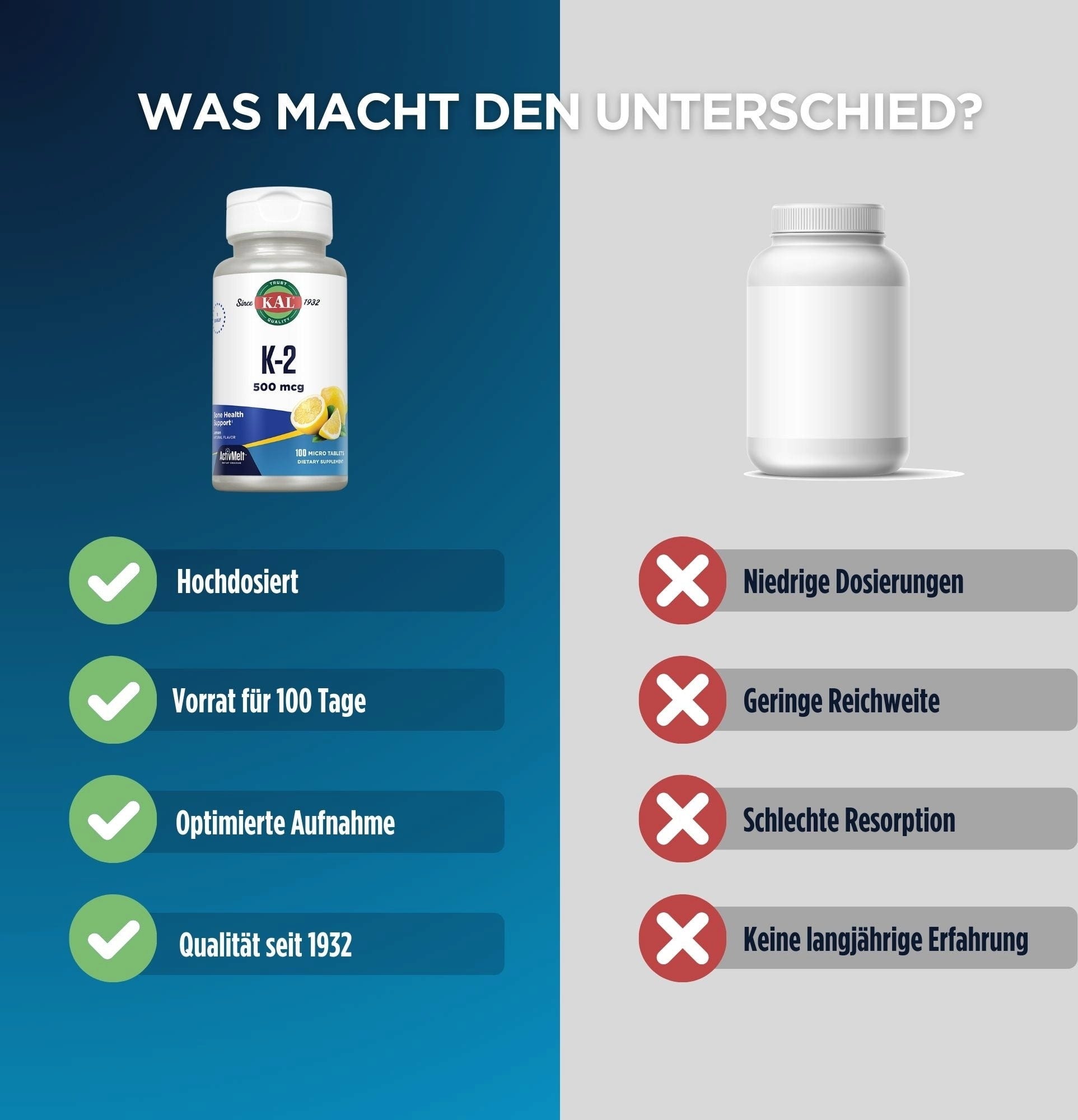 Die KAL Vitamin K2 Tabletten lösen sich irrsinnig schnell nach Einnahme im Mund auf und verbreiten einen herrlich frischen Zitronen-Geschmack.