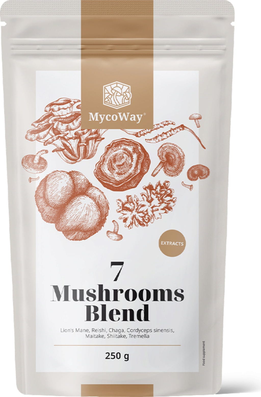 Diese Rezeptur vereint die Extrakte von sieben traditionsreichen Pilzen in einem einzigen Pulver. Enthalten sind Löwenmähne, Reishi, Chaga, Cordyceps sinensis, Maitake, Shiitake und Tremella. Durch die Verwendung von Extrakten in den Verhältnissen 4:1 und 12:1 bietet dir diese Mischung eine konzentrierte Form der Inhaltsstoffe, die weit über herkömmliches Pilzpulver hinausgeht.