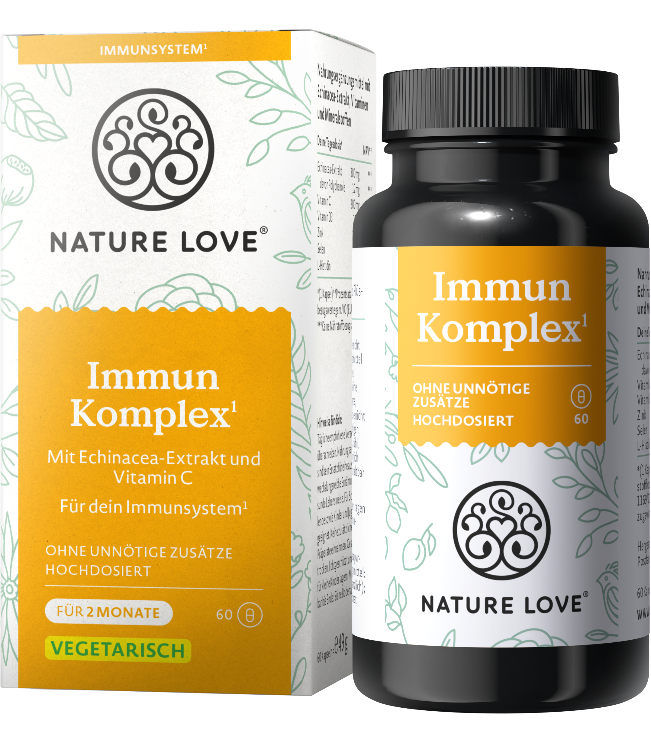 Diese nährstoffreichen Immun Komplex Kapseln von Nature Love sind mit wertvollem Echinacea-Extrakt, Vitamin C, Vitamin D, Zink, Selen und L-Histidin angereichert. Bereits eine Kapsel täglich reicht aus, um dich Tag für Tag optimal zu unterstützen. Die Kapseln sind frei von unnötigen Zusatzstoffen und Gentechnik.