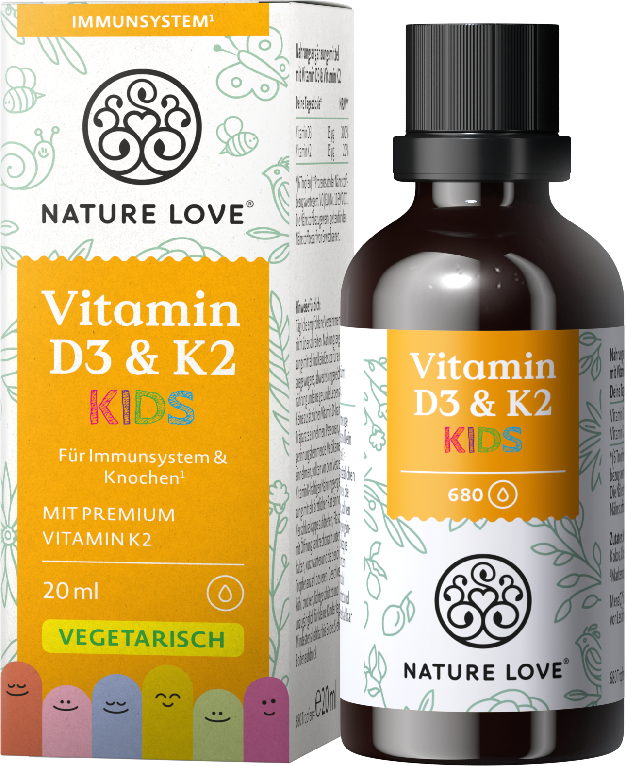 Kinder befinden sich im Wachstum und sind noch dazu gerne lange in Bewegung. Eine optimale Unterstützung für den Körper des Kindes kann daher durchaus sinnvoll sein. Die Kids Vitamin D3 & K2 Tropfen von Natur Love unterstützen hierbei optimal.