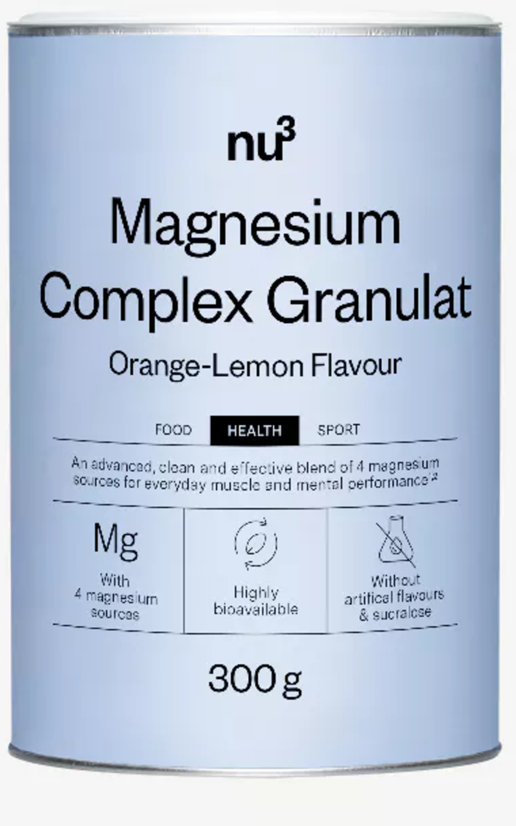 Das nu3 Magnesium-Granulat bietet vier ausgewählte Magnesiumverbindungen, die sich leicht in Wasser auflösen und einen natürlichen Orangen-Zitronen-Geschmack haben. Ganz ohne künstliche Aromen und ohne Sucralose. Das Granulat eignet sich ideal für den Alltag und für alle, die Magnesium bequem als Getränk aufnehmen möchten.