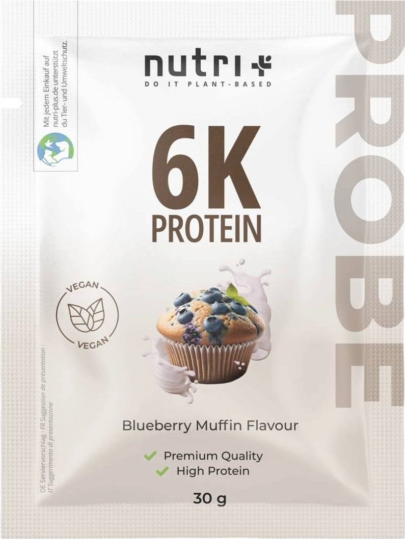 nutri + Vegan 6K Proteinpulver Probiergröße, Blueberry-Muffin (30 g)