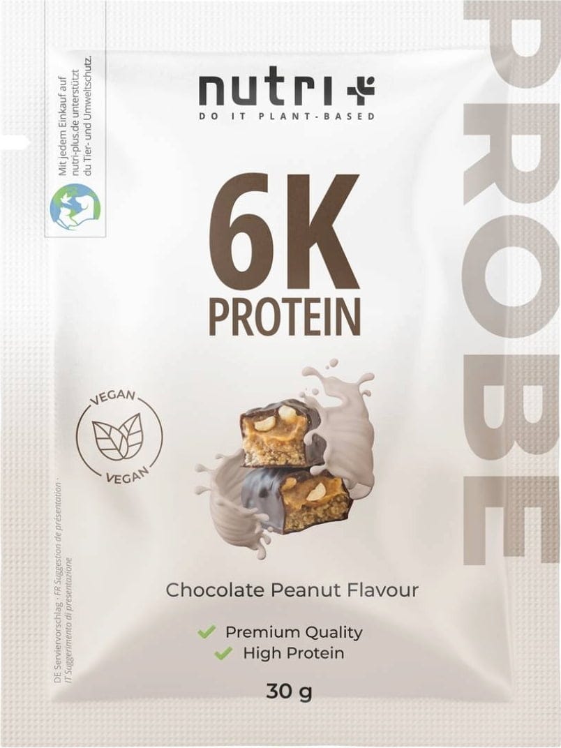 nutri + Vegan 6K Proteinpulver Probiergröße, Chocolate-Peanut (30 g)