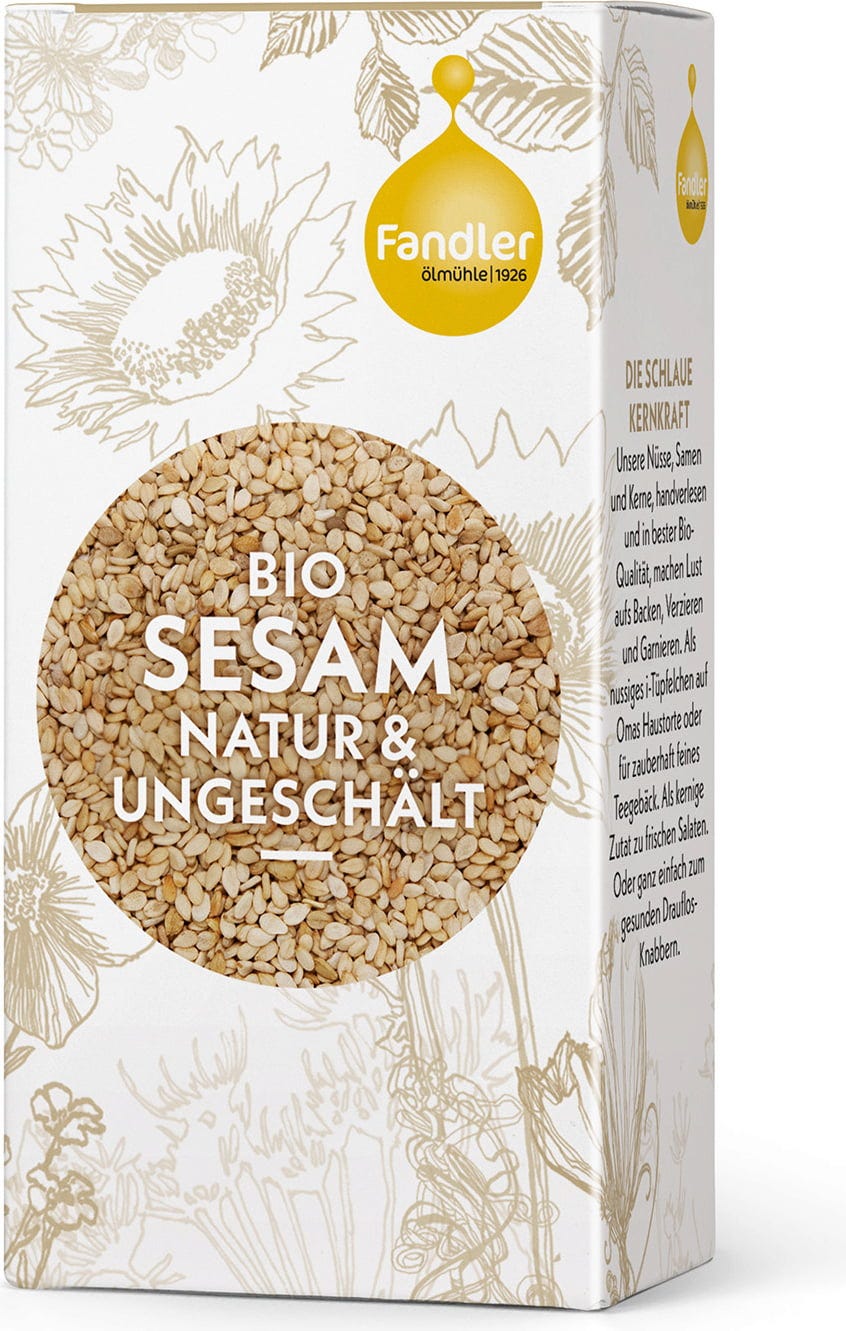 Sesamkörner stammen ursprünglich aus Afrika und Indien, heute werden sie größenteils aus China und dem Myanmar exportiert. Sesam schmeckt leicht nach Nüssen und wird in der Küche gerne als Topping für Speisen und Gebäck verwendet. Die kleinen Körner enthalten außerdem ungesättigte Fettsäuren sowie sehr viel Eiweiß und Selen. Wichtige Mineralstoffe wie Eisen, Calcium, Vitamine und Eisen sind ebenso enthalten.
