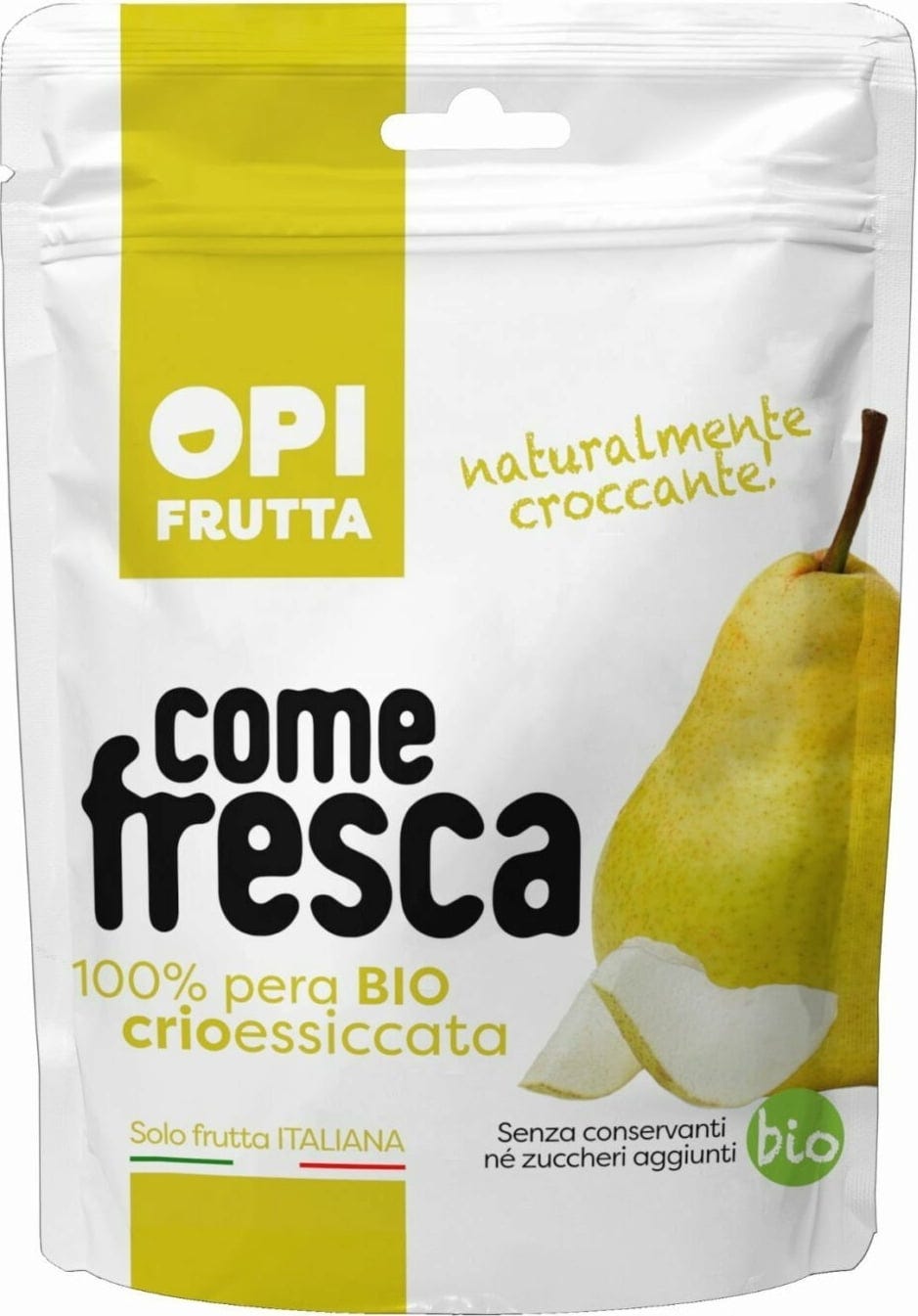Diese gefriergetrockneten Bio-Birnen stammen aus der Region Modena. Sie punkten mit zarter Textur, natürlicher Süße und einem hohen Ballaststoffgehalt – ideal für bewusste Ernährung bei vollem Geschmack.