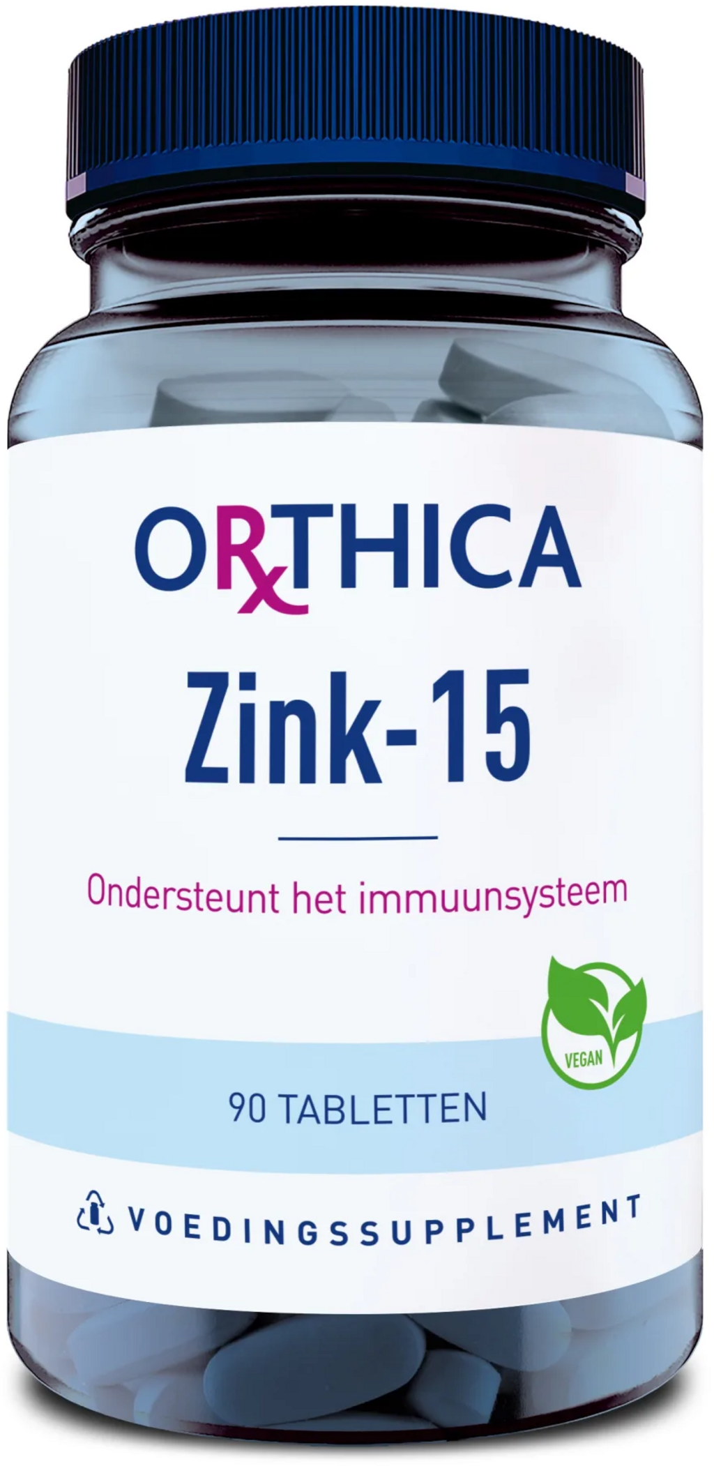 Orthica Zink-15 enthält 15 mg Zink in Form von Bisglycinat und 1 mg Kupfer als Gluconat pro Tablette.