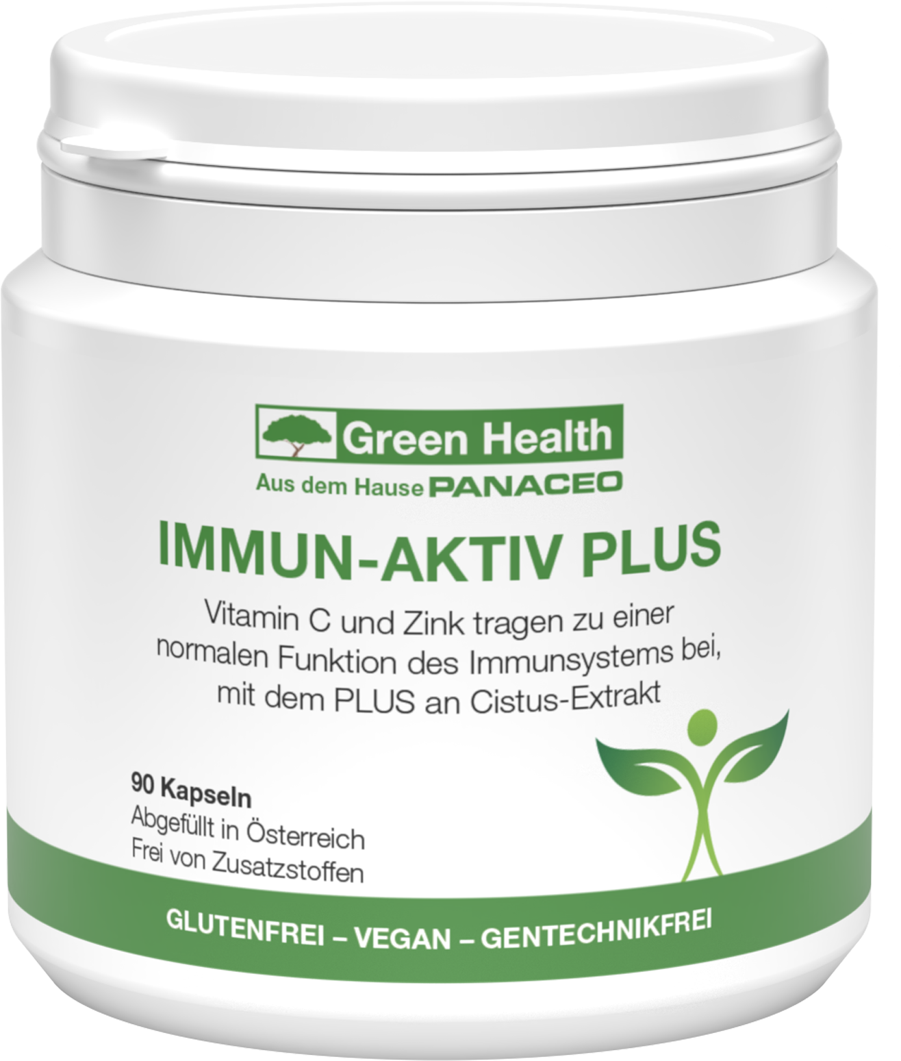 Die Green Health Immun-Aktiv Plus Kapseln von Panaceo bieten dreifache Unterstützung durch Vitamin C, Zink und natürliches Polyphenolen, das aus der Cistus-Pflanze gewonnen wird. Vitamin C und Zink tragen zu einer normalen Funktion des Immunsystems bei. Vitamin C, Zink und Polyphenolen tragen dazu bei, die Zellen vor oxidativem Stress zu schützen. So bist du bestens für kalte Wintermonate und stressige Lebensphasen gerüstet.