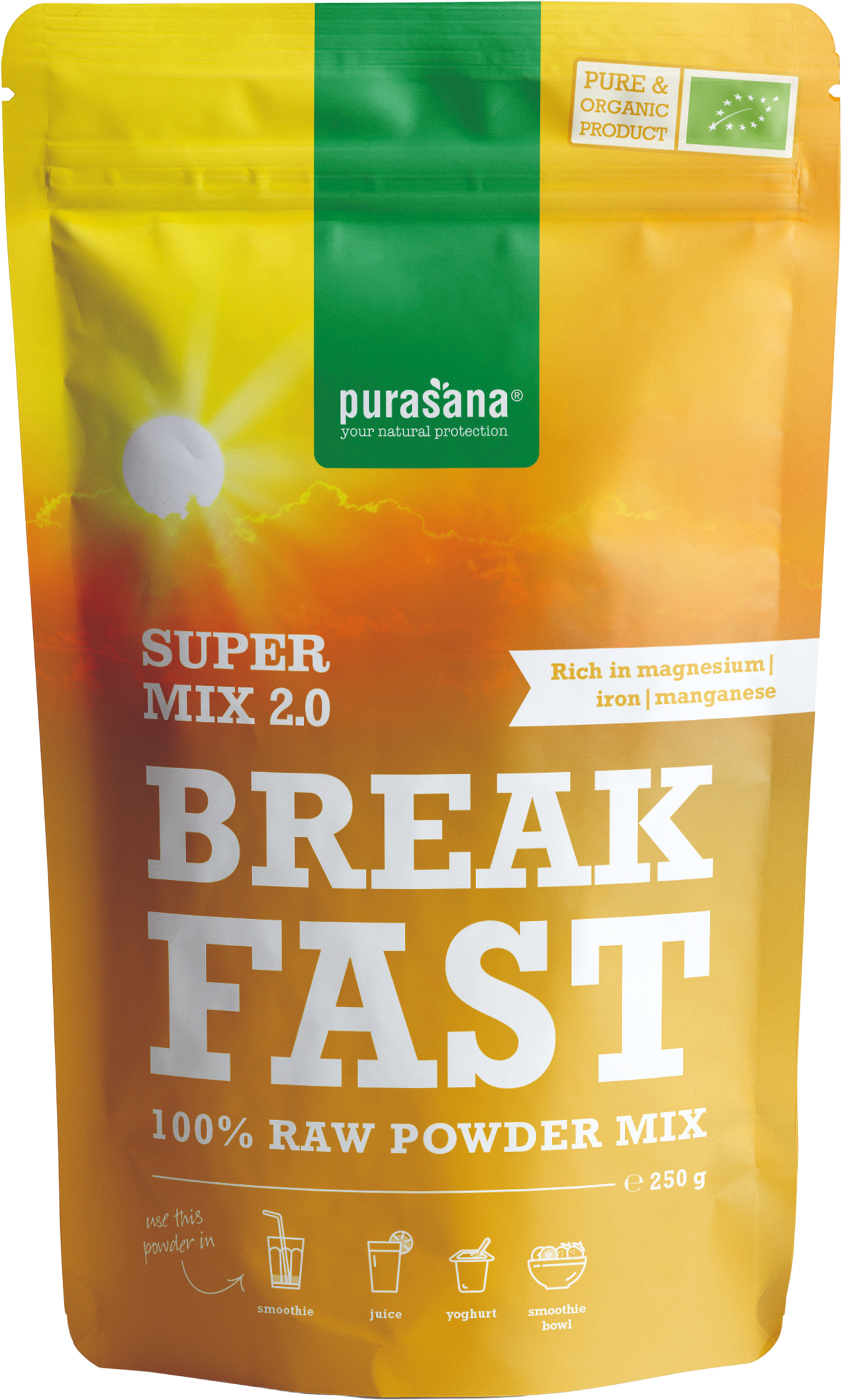 Mit dem Breakfast Mix 2.0 bist du bestens für den Tag gerüstet! Maca-Pulver und Spirulina liefern neuen Elan und sorgen so für einen frisch-fröhlichen Start. Zudem enthält das Pulver Magnesium, Eisen und Mangan. Schnell probieren!