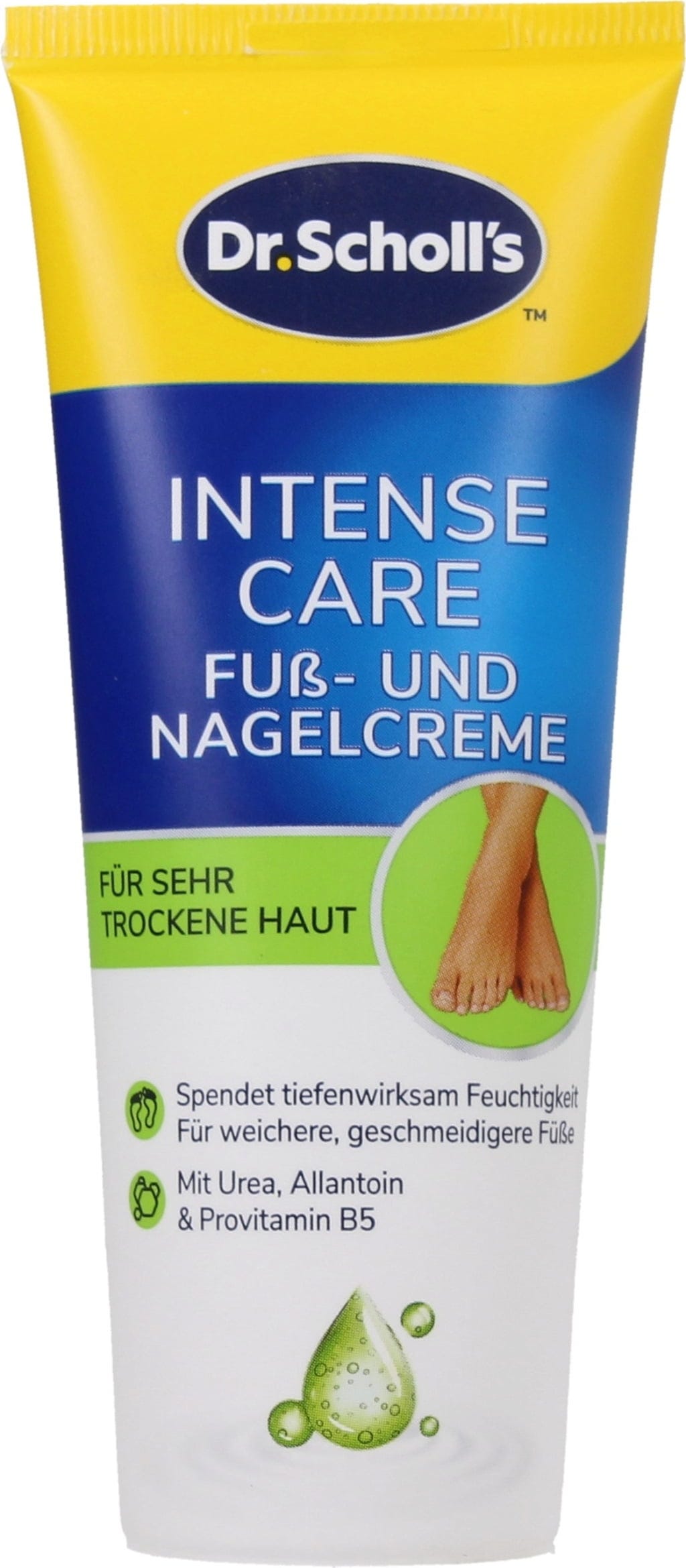 Die ExpertCare Intense Care Fuß- & Nagelcreme von Scholl spendet deinen Füßen intensive Feuchtigkeit. Provitamin B5, Allantoin und Bisabolol pflegen die Haut zusätzlich auf wunderbare Weise.