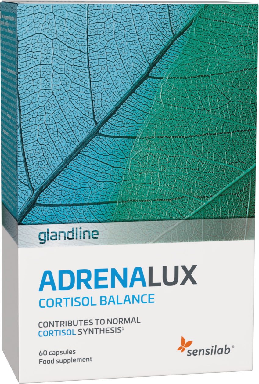 Sensilab glandline Adrenalux ist hormonfrei und natürlich. Es beinhaltet Extrakte aus Ashwagandha, Rhodiola Rosea und schwarzem Pfeffer sowie die Vitamine B5 und B6.