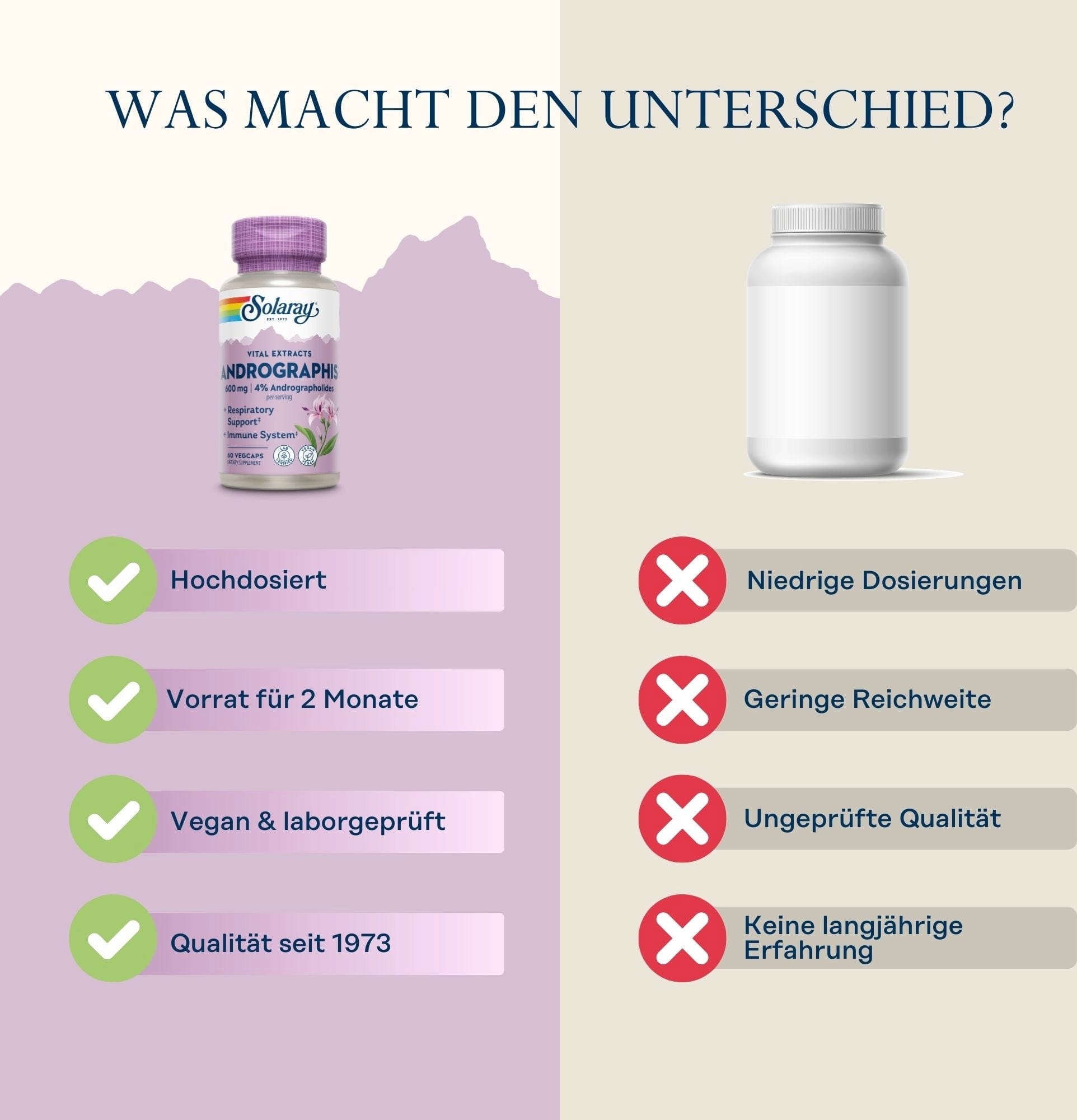 Andrographis paniculata, auch bekannt als Kalmegh oder Indische Echinacea, ist eine büschelige Pflanze, die vor allem in der traditionellen Thai-Medizin sehr geschätzt wird. Die veganen Andrographis-Extrakt Kapseln von Solaray dienen dir und deinem Körper als gute Unterstützung im Alltag. Zusätzlich sind die Kapseln mit Inulin angereichert.