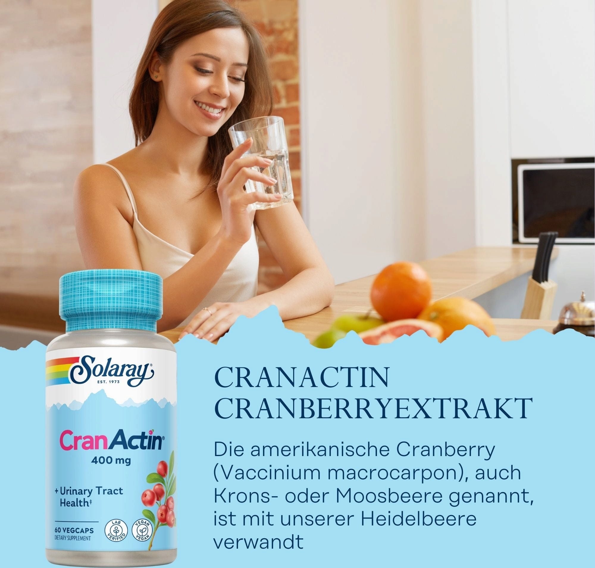 - Die amerikanische Cranbeere (Vaccinium macrocarpon), auch Krons- oder Moosbeere genannt, ist unserer Heidelbeere verwandt. CranActin Cranberry AF Extrakt mit einem Gehalt von 400 mg Cranbeeren Extrakt sowie 30 mg natürlichem Vitamin C pro Kapsel!