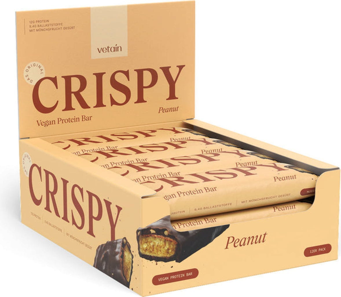 Vetain CRISPY Vegane Proteinriegel - 12er Pack, Peanut (12 Riegel)